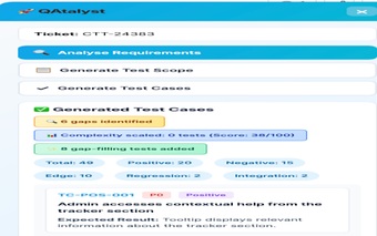 Aplikacja oferuje funkcję analizy wymagań z biletów Jira, co umożliwia wygenerowanie od 20 do 100 szczegółowych scenariuszy testowych. Użytkownik może łatwo przeglądać i eksportować wygenerowane przypadki testowe do systemu zarządzania testami. QAtalyst zapewnia bezpieczeństwo danych dzięki lokalnemu przechowywaniu kluczy API oraz pełnej audytowalności, co czyni go idealnym narzędziem dla inżynierów QA, programistów i menedżerów produktów.